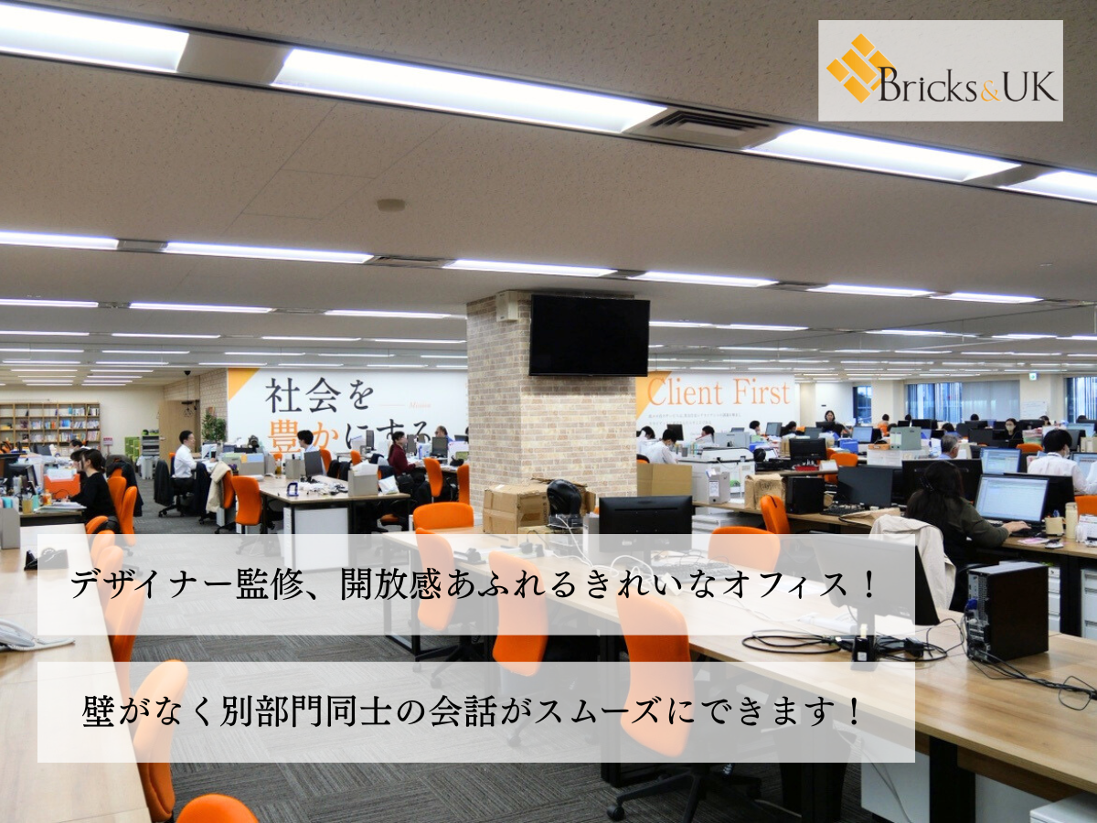事務所は、ワンフロアに色々な部署の人たちが顔を合わせながら業務を行っています。